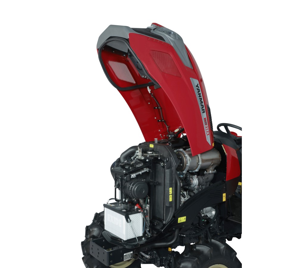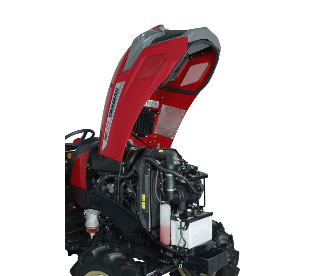 Yanmar YM238 is a high-horsepower, high-performance tractor that combines strength with smart farming. Powered by a 38.2 HP TNV Stage V engine and a Synchronized Reverser Transmission (SRT), it’s designed to meet future farming needs while ensuring operator comfort and efficient fuel usage. Its narrow body (1.2 m) and foldable ROPS make it ideal for navigating orchards, vineyards, and tight farm lanes without compromising power or safety.